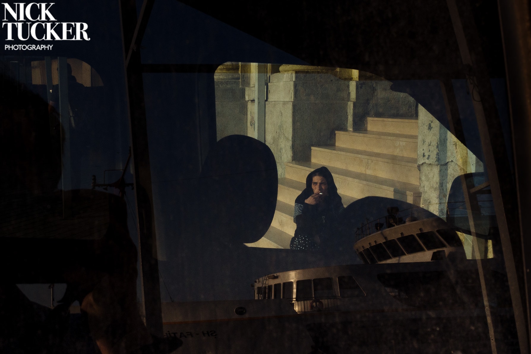 Hello. I know I haven’t posted a Friday Photo for a while. That is remiss of me and for that I can only apologise. Moving house and being battered by a man-flu virus of near Biblical proportions is no excuse. (It is a bit of an excuse but I’m trying to be contrite here.) But anyway, I’m back now and I thought I’d return with someone a little different for today’s image after being so long gone. This is a shot I got recently on a street photography trip out in Istanbul with our collective The 8 Street. (The 8 Street is a brilliant coming together of photographers essentially shooting weddings but wanting to extend ourselves and work within a wider range of modes — for more on us click the link at the bottom of this post and last month’s Photo Professional magazine.) I framed this image, shooting through a car window, like this for a couple of reasons. The essentially pragmatic reason being that as I’d approached the woman on the steps I could tell she was guarded and uneasy about the camera (even with the small, unobtrusive Olympus OMD-5), so I had to find a way of tactfully placing myself somewhere out of sight. The second reason, being that in compositional terms the car window gave me an interesting frame surrounding the woman sitting in the last rays of the days sun with a dark back counterpoint, as well as using the reflection of the ship to give a slightly wider, if oblique, context. Istanbul is also very much a city of old and new so I like that his is an old woman smoking on the steps of an old building, shot through a brand new car. It’s that sort of coming together of various elements that make this such a rewarding image for me.