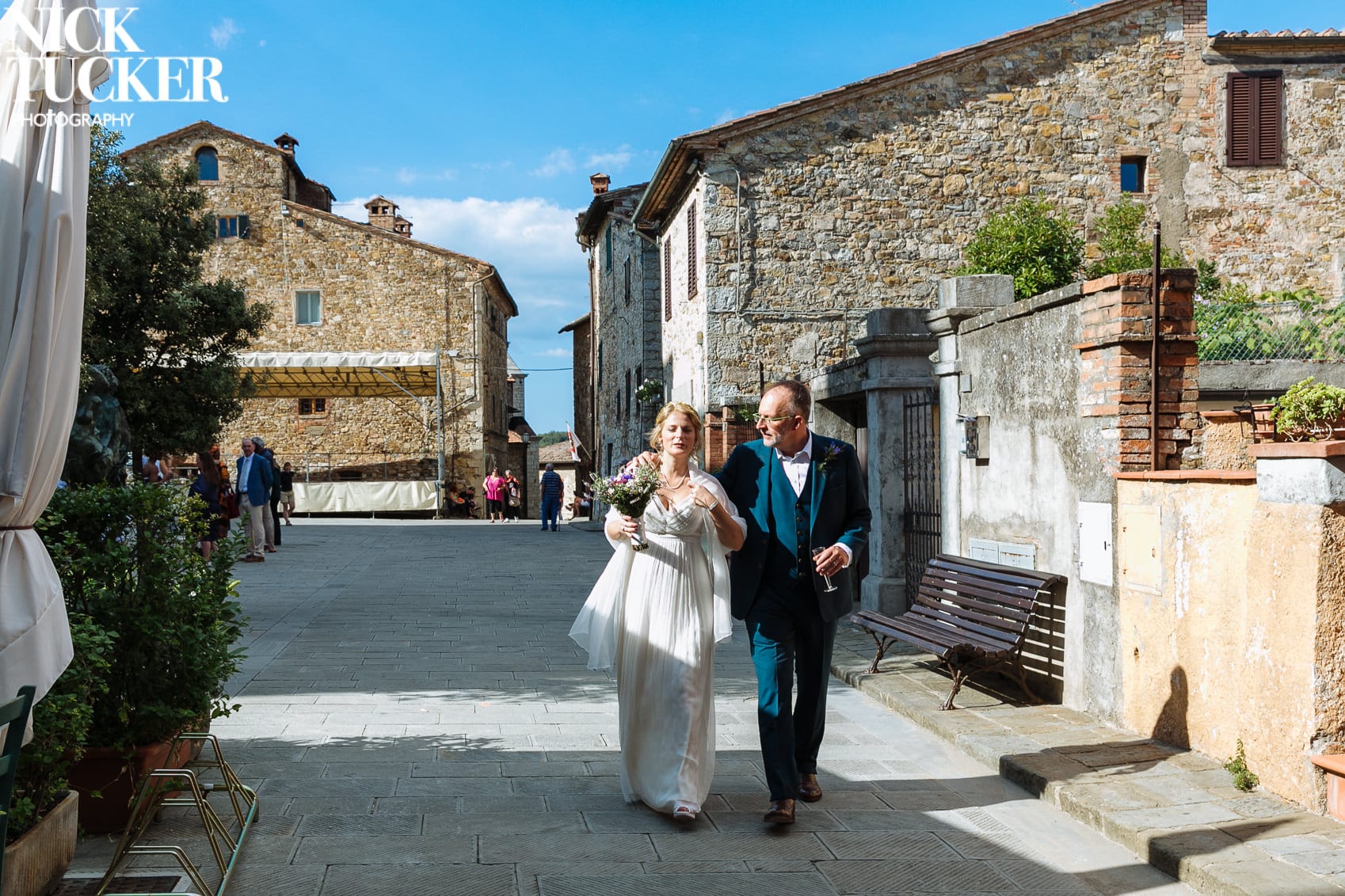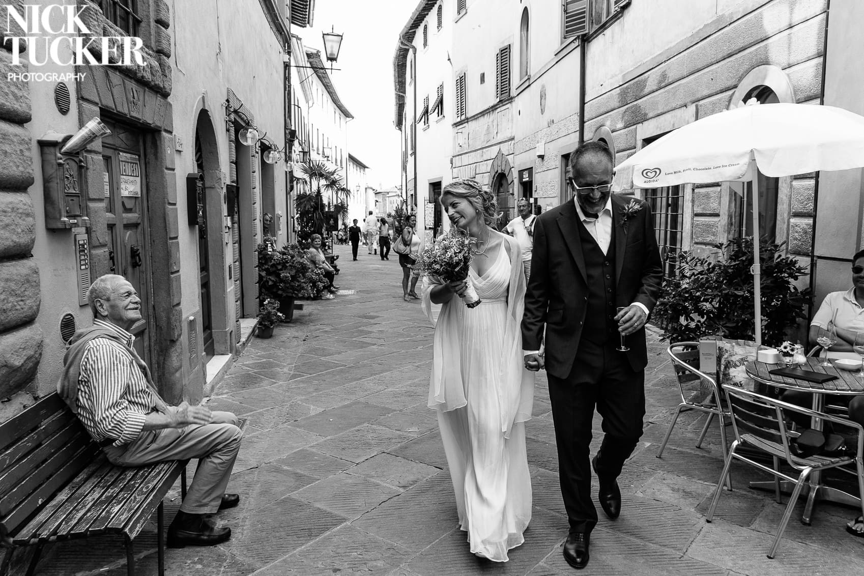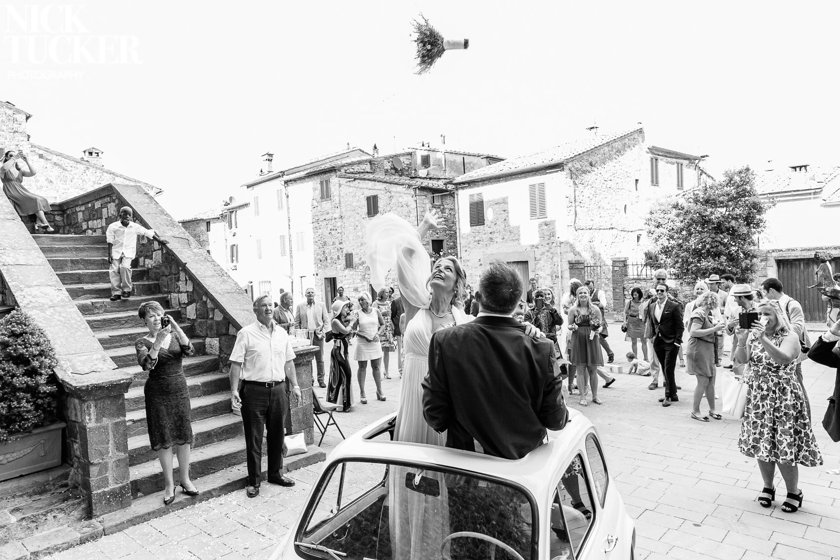 This was an absolutely wonderful wedding.  You’re probably thinking well duh, Nick, that’s kind of a no-brainer.  It’s a wedding in a vineyard, in Chianti.  And you’d be absolutely right, it was a wedding in a vineyard in Chianti.  But in the end that was almost incidental to an entirely beautiful wedding with an entirely lovely people.  The warmth and spirit of everyone there was gorgeous, while Ally and Chris were just ridiculously delightful.  The couple met in Sierra Leone and while they may be 20 years apart in age they were so obviously soul mates that fact becomes irrelevant in about 6.3 seconds.  You’d also be hard pressed to level an accusation of trophy wife at Ally.  Chris is an international lawyer and Ally has advised the King of Sudan on containing the spread of Ebola.  So, on paper then, what some people might call ‘a power couple.’  But in real life, two of the warmest and good hearted people I have photographed.  Quick to laugh doesn’t even come close.  There wasn’t one moment they weren’t smiling or laughing the three days I was around them.  So this then is there wedding day.  A day that started overlooking lush green vineyards, took a sojourn in an old church in the town square for the marriage and drinks and then returned to the vineyard for more drinks, astonishingly good Italian food and a party that I bowed out of at around 1am, but which the kids kept going until 8am.  Oh, and Ally’s dad drove her to church in a little Fiat 500, which just about coped with the rolling hills…  Perfect.