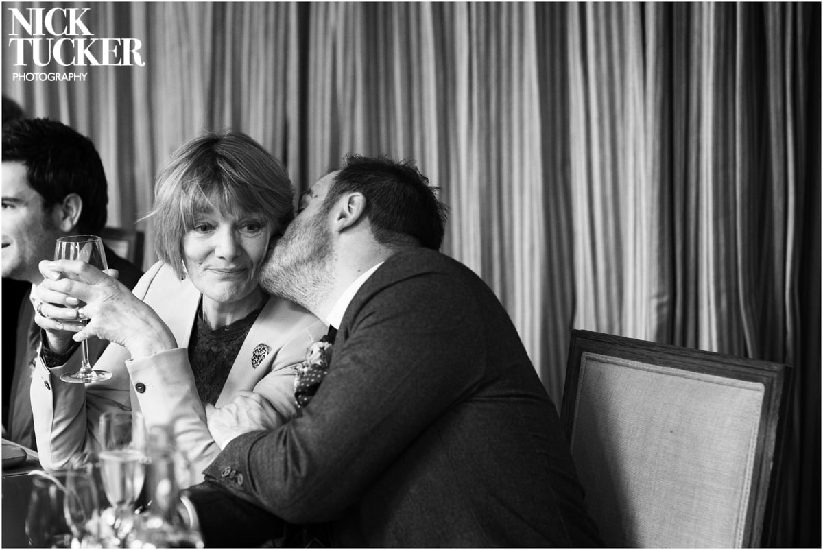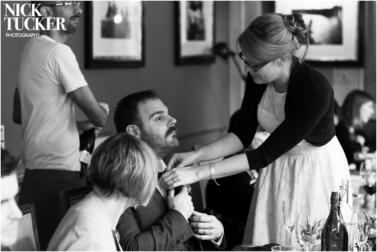 If this wedding looks a little bit back-to-front and topsy turvy to you, it’s only because it was.  I don’t even know if I should be calling this Berkshire wedding photography because the wedding itself took place in London, after the wedding breakfast, which was in Berkshire.  And the two were five days apart.  Let me try and explain. Jackie and Stuart are two incredibly charming geologists, who now live in Australia.  However their friends and family do not.  I’m too confused about exactly why the wedding days had to be set up the way they did so let’s just leave it that they did.  Because the reason made sense.  At the time.  So then the result was Jackie and Stuart had their wedding party on the Sunday, at the Olde Bell in Hurley — taking the wedding breakfast in its atmospheric Berkshire barn, softly lit by Christmas lights.  Then, five days later,the couple had their registry office wedding at Marylebone Town Hall before moving to the Grazing Goat for a more intimate and familial wedding lunch.  And if that isn’t disorientating enough in terms of the following photos, we also stopped off at UCL where their love had originally blossomed around the science and study of solid Earth.  If all that sounds a bit exhausting, it really wasn’t.  The unconventional nature of the whole thing leant it an air of relaxed informality.  I personally love shooting weddings that are a little different, both days were a real pleasure and we had a great time wandering the hallowed corridors of UCL for the bride and groom portraits.  (For a closer look at the lecture rooms see the university scenes in Christopher Nolan’s Inception).