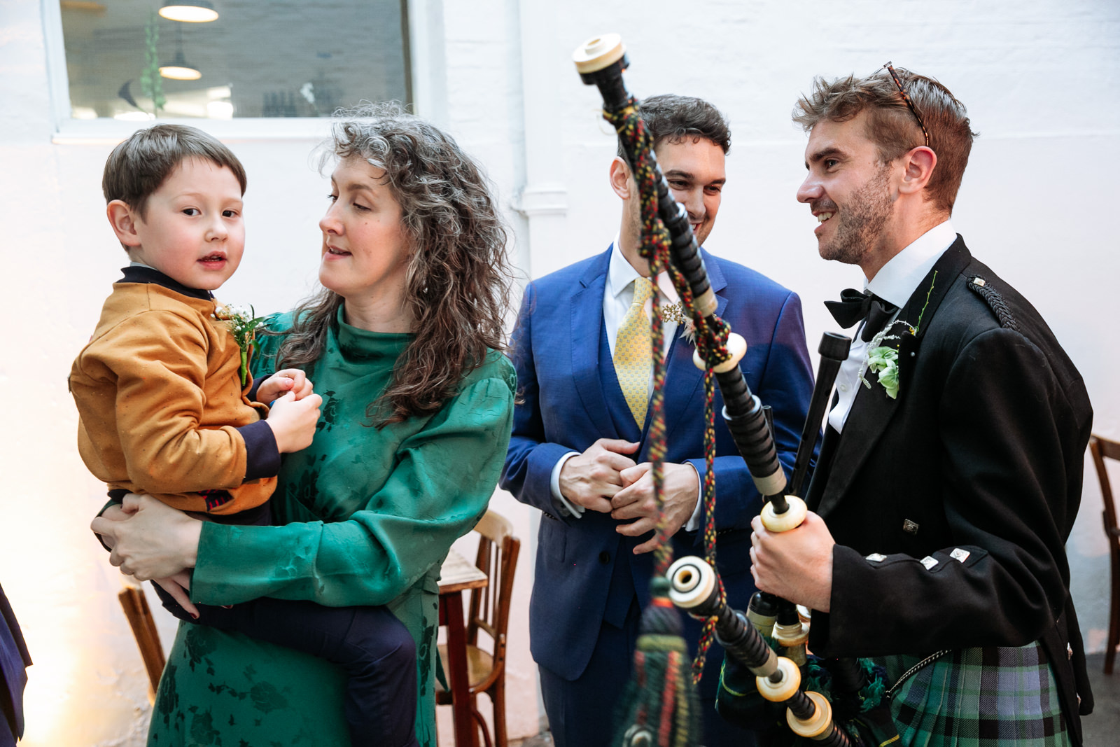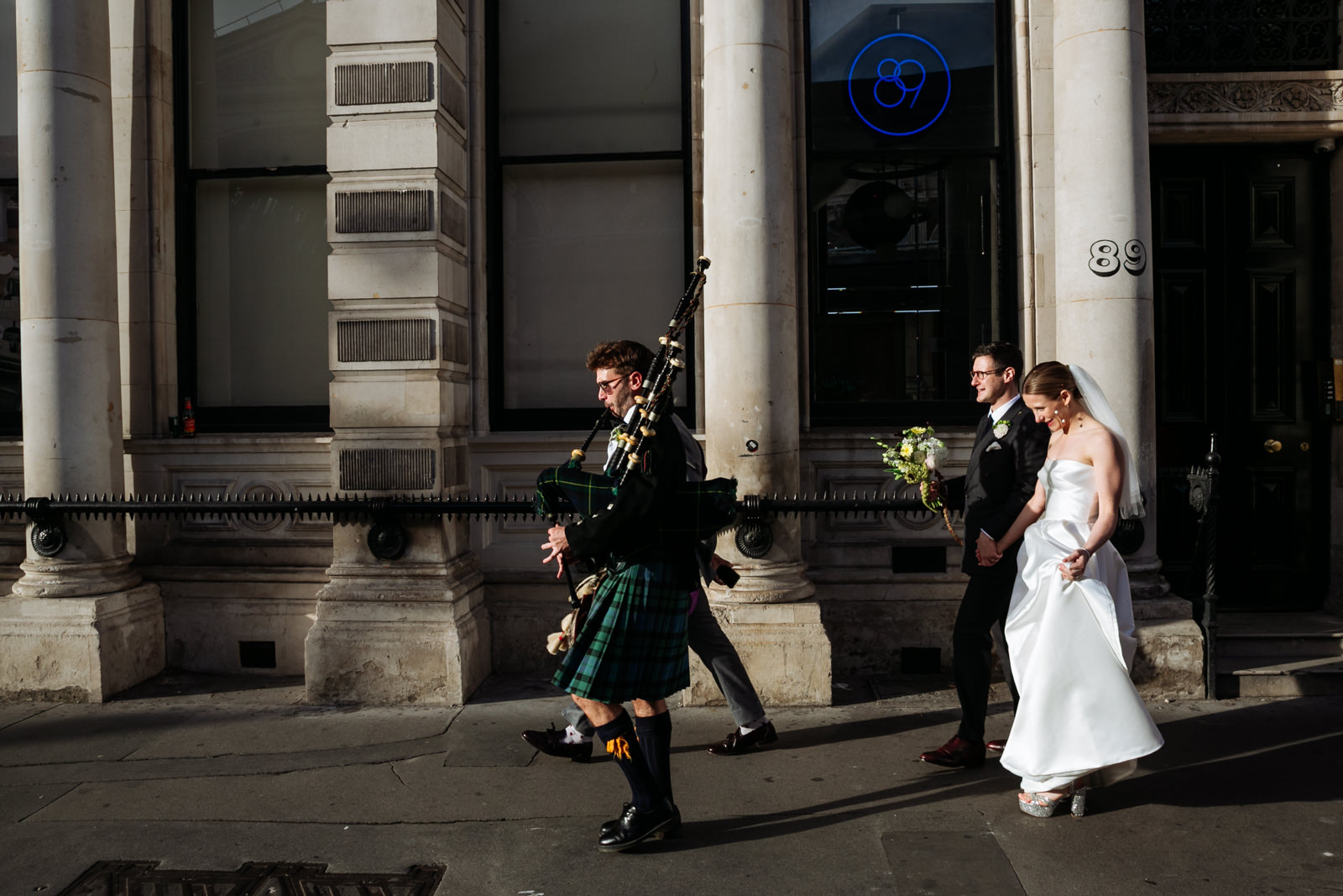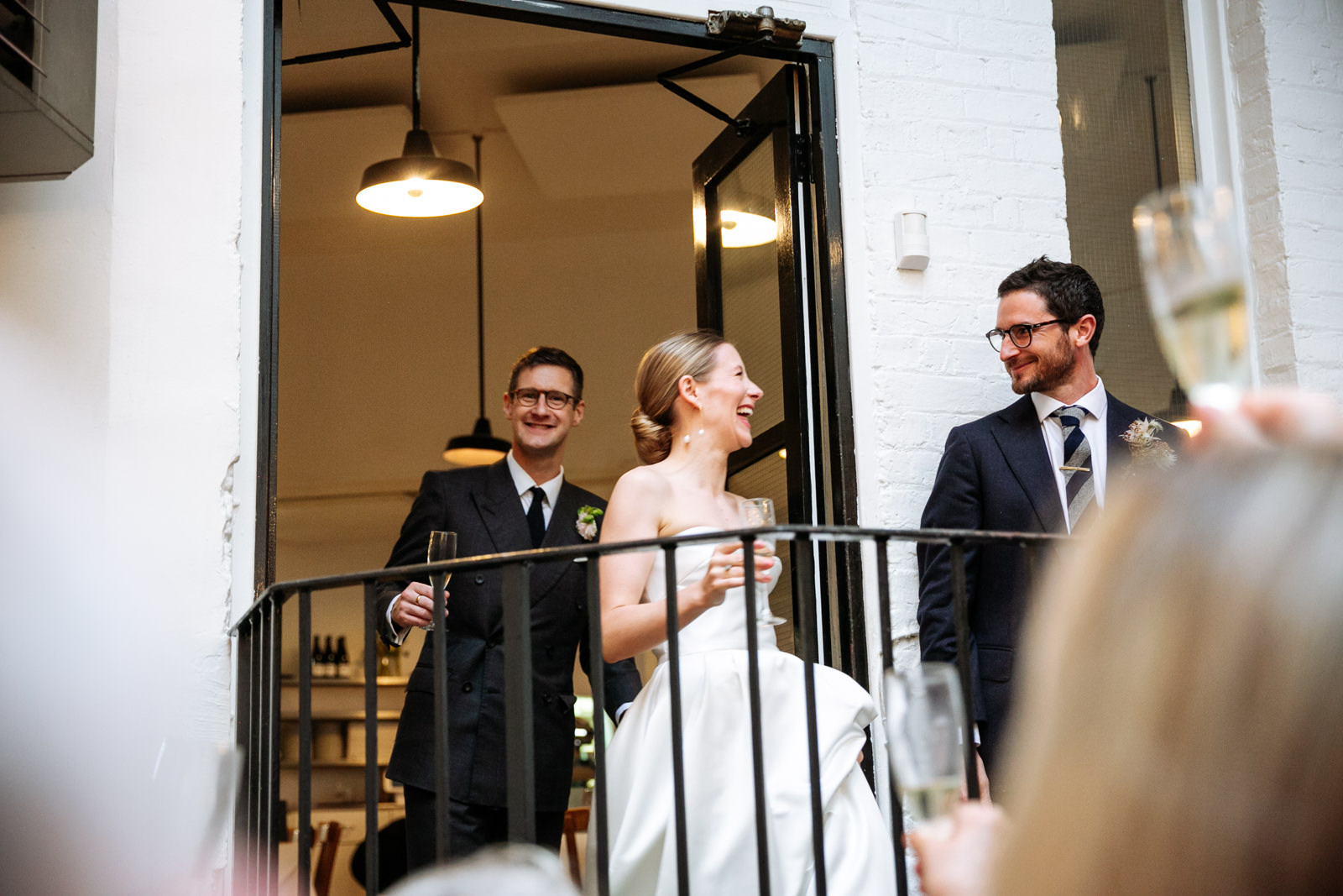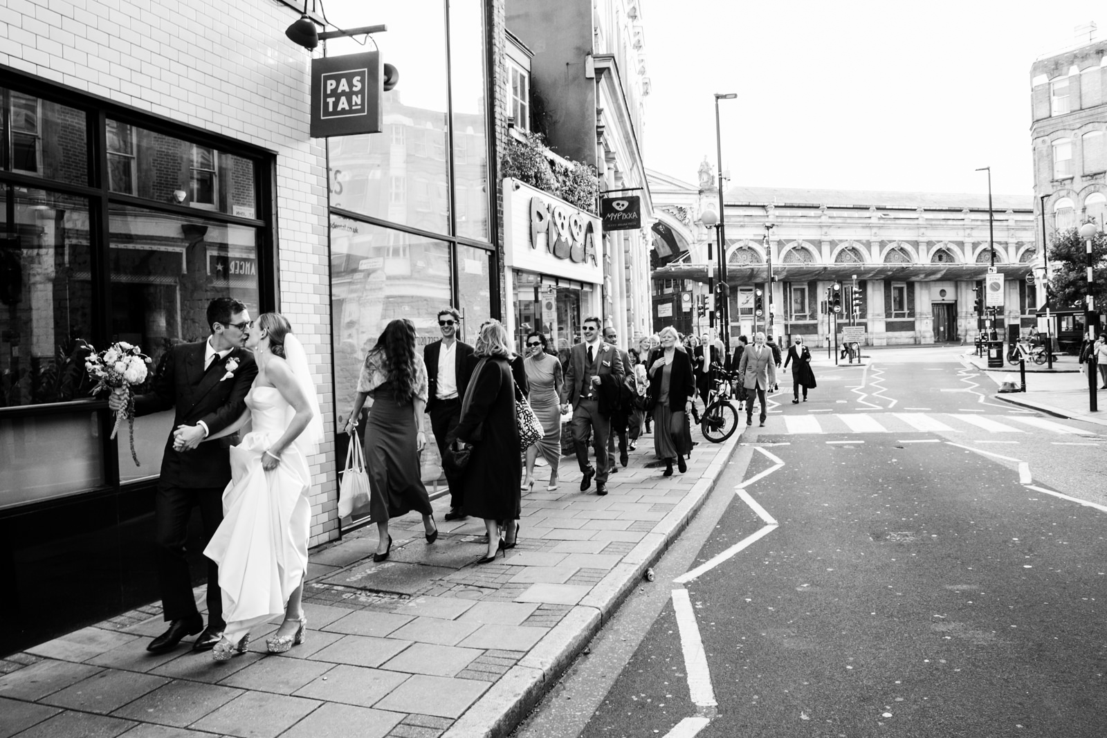 As the newlyweds emerged, hand in hand, under a shower of confetti, the mood shifted from serene reflection to jubilant celebration. The cobbled courtyard buzzed with well-wishers. Then another friend and guest, a Scot called Scot appropriately enough lead them passed the almshouses, down along Smithfield’s and into Clerkenwell for their wedding reception at the renowned restaurant, St John.