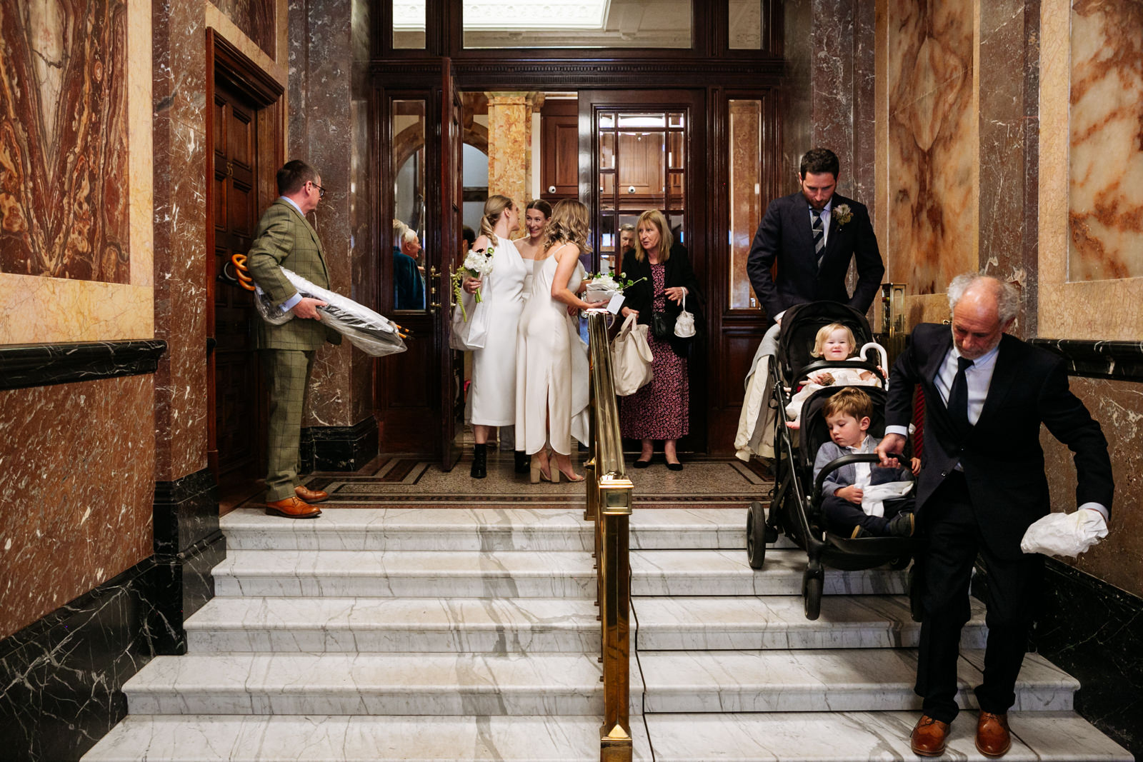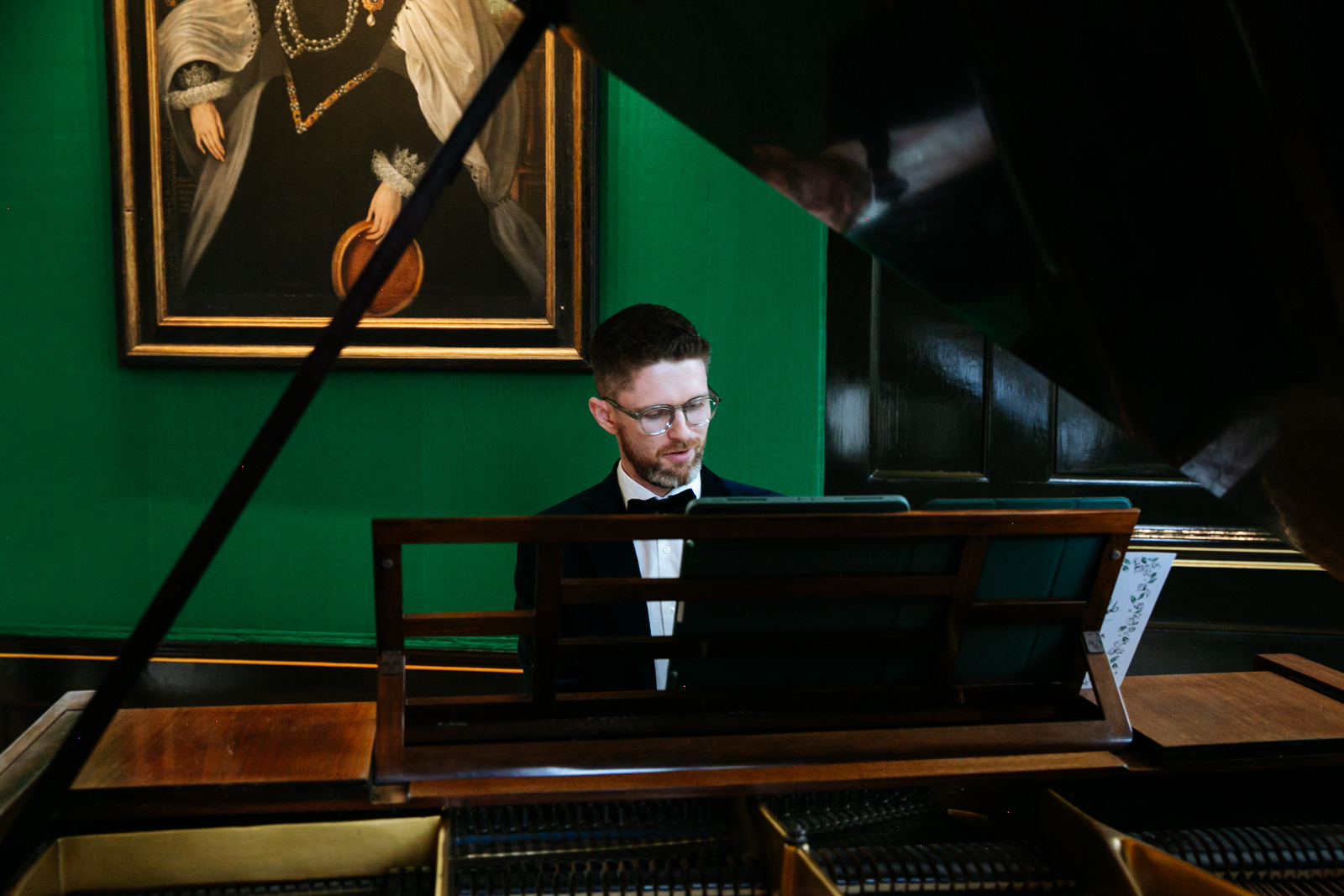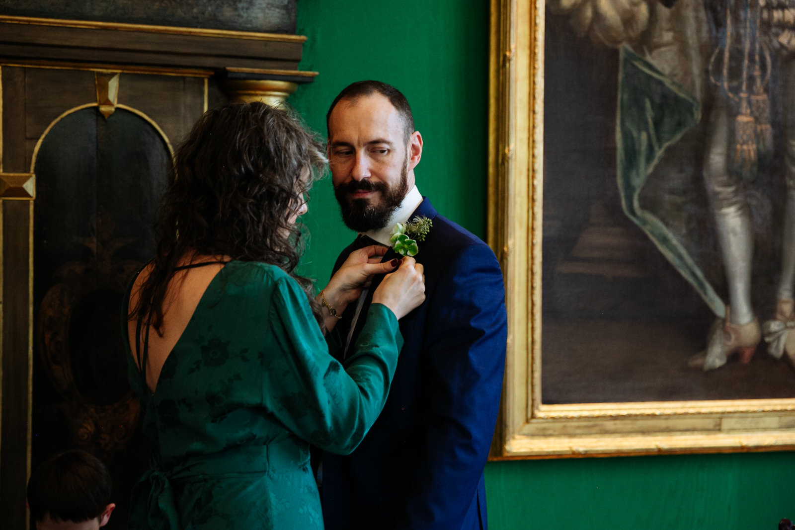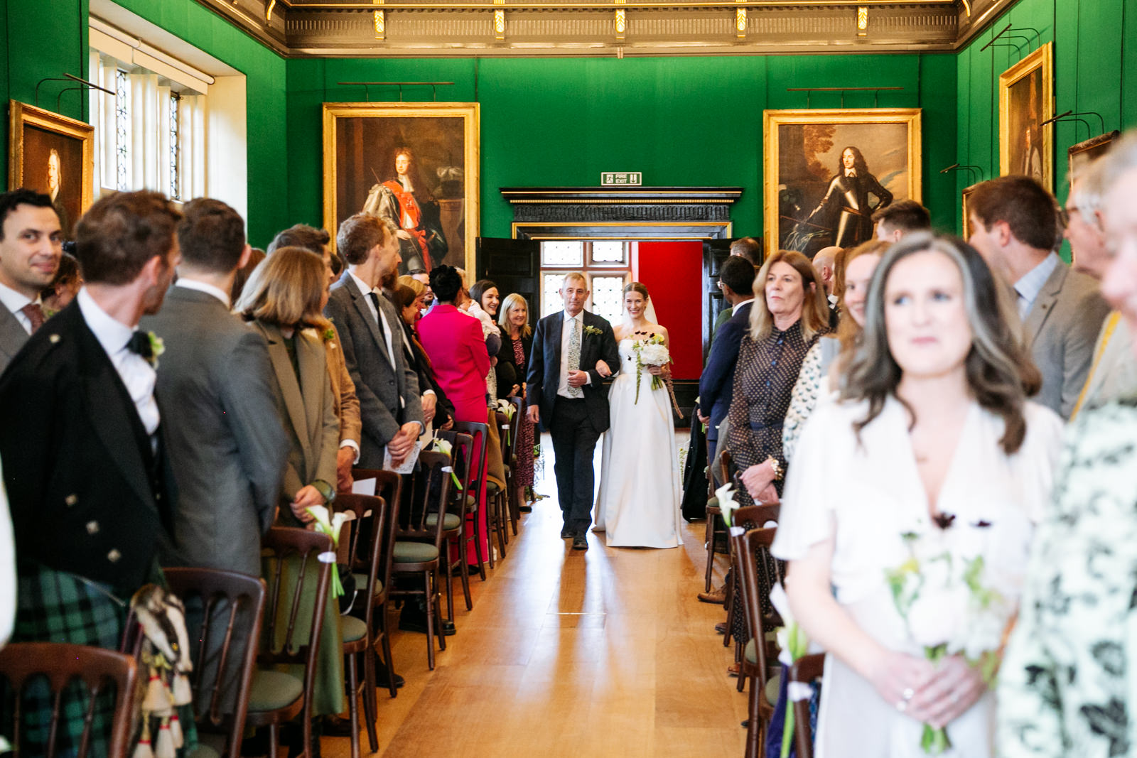 Their vows, exchanged beneath the vaulted golden ceiling above the forest green walls of the long room, were heartfelt and intimate, punctuated by laughter and a rousing rendition of It Must Be Love by Madness played by a friend and guest on a grand piano nestled in the corner of the room. It was a brilliant counterpoint to the stately hallowed halls while being perfectly in keeping with the entire mood of the ceremony.