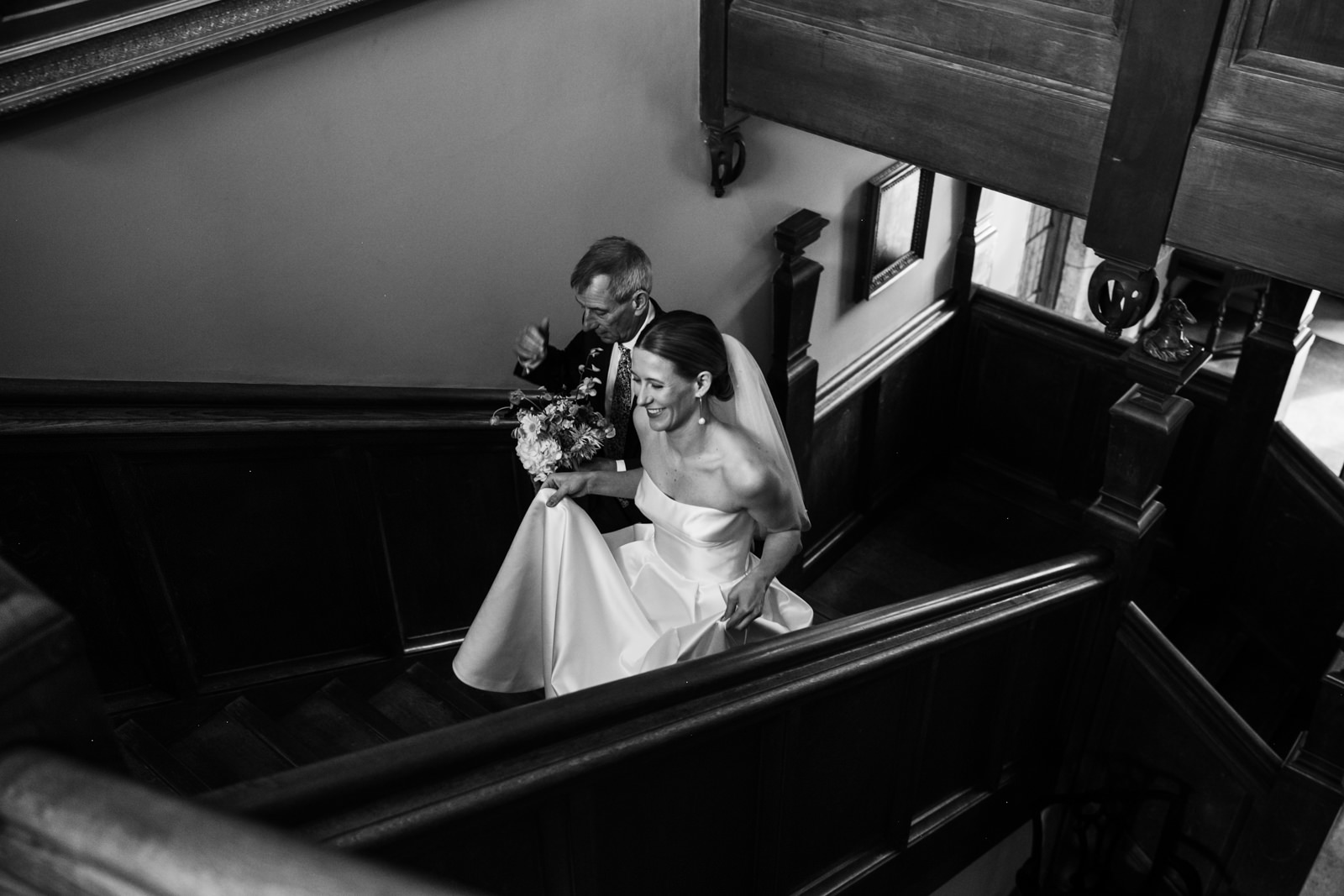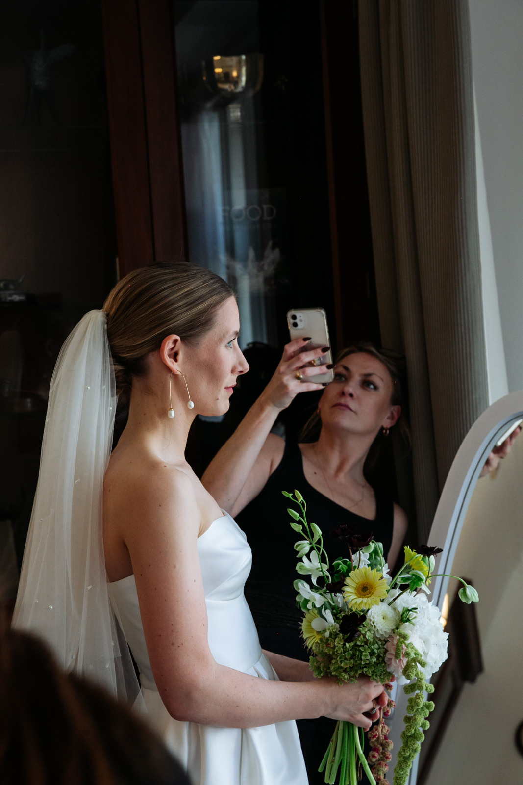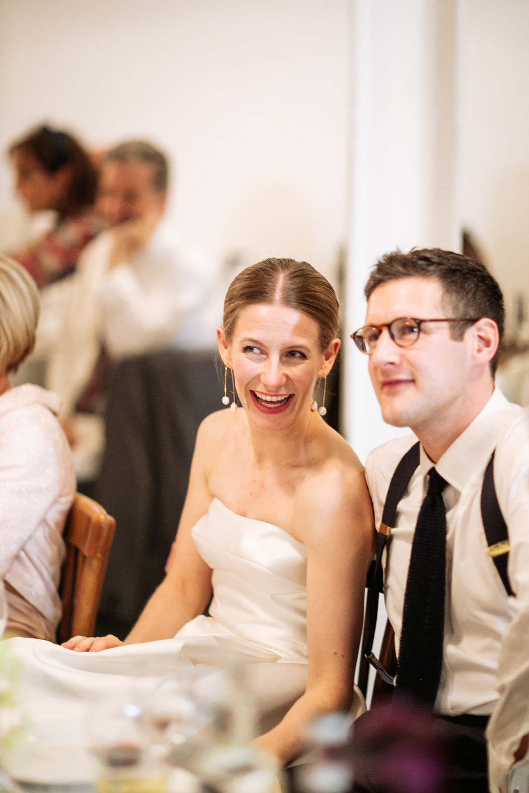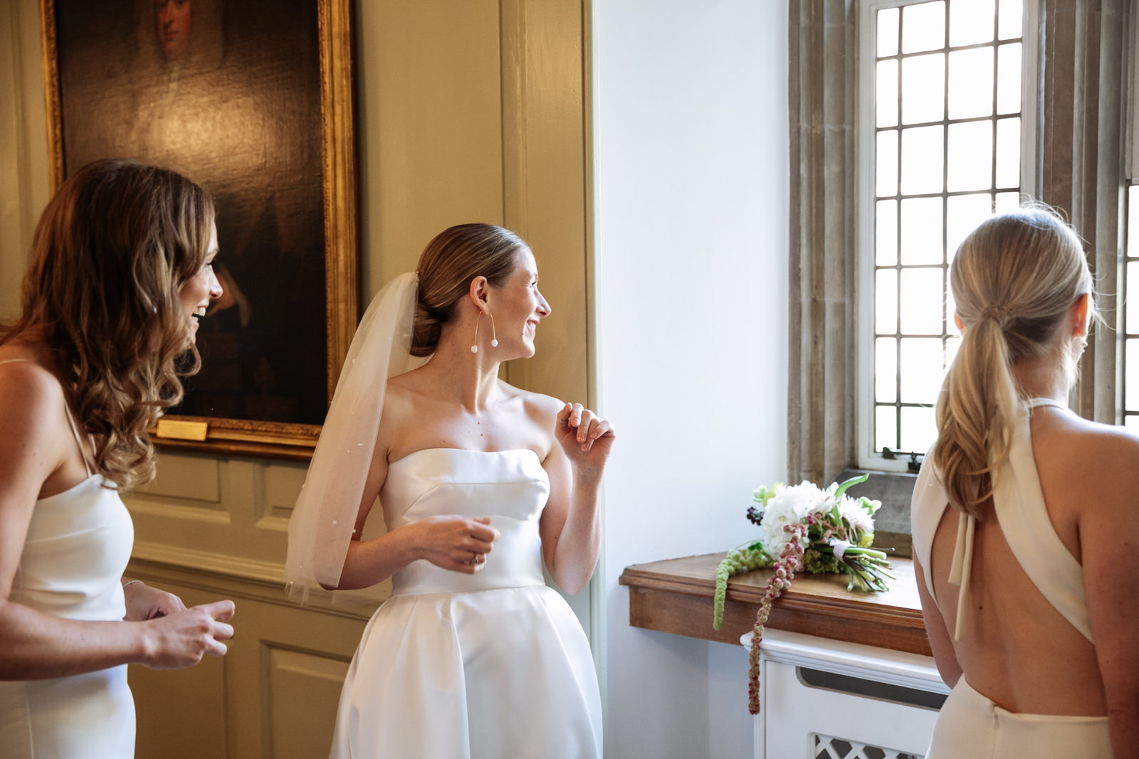 Their vows, exchanged beneath the vaulted golden ceiling above the forest green walls of the long room, were heartfelt and intimate, punctuated by laughter and a rousing rendition of It Must Be Love by Madness played by a friend and guest on a grand piano nestled in the corner of the room. It was a brilliant counterpoint to the stately hallowed halls while being perfectly in keeping with the entire mood of the ceremony.