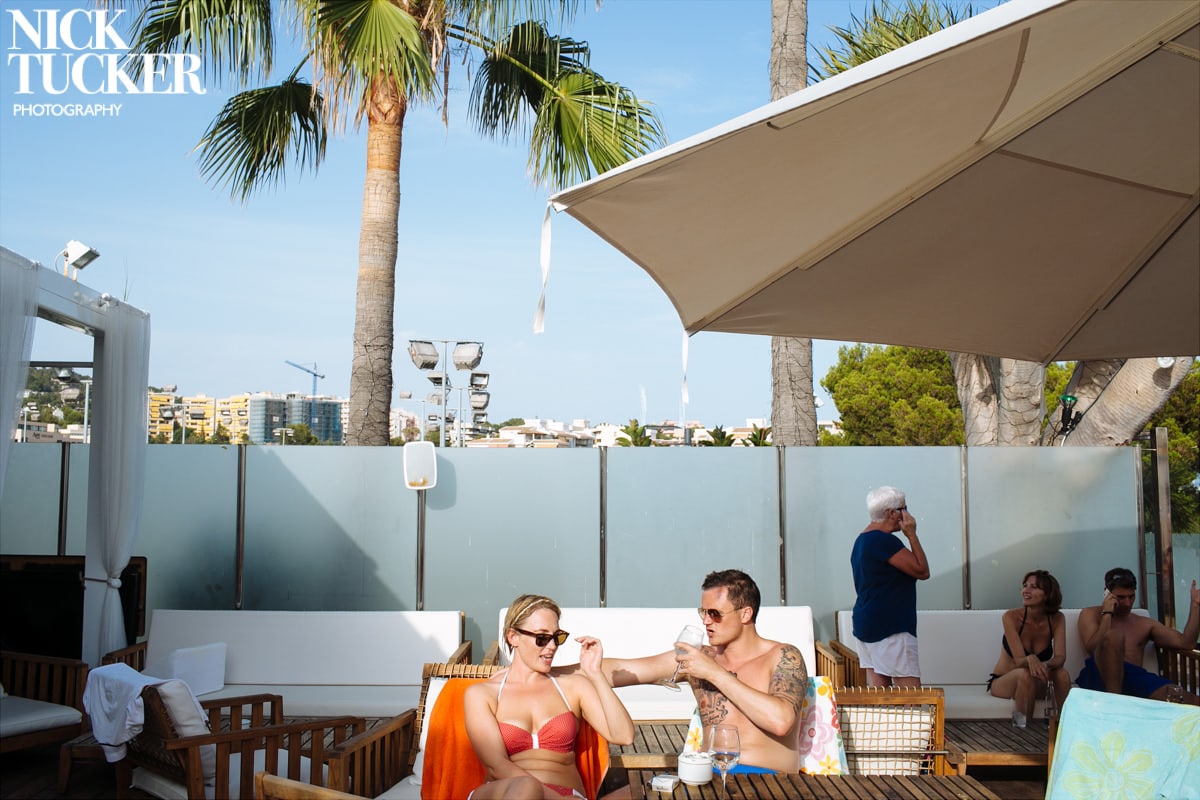 So it’s a cold dark Friday afternoon with an iron chill in the air and I don’t know if this blog post will be a slap in the face to your late December, last ditch Christmas shopping or whether it will at least be spot of sunshine to carry you through. If you’re Laura or Justin or any of the guests lucky enough to be treated to this pretty amazing Spanish wedding after party of beer and sangria at Majorca’s beauitful Mood bar I imagine it will be a spot of sunshine. For everyone else, well, I enjoy the lifestyle photography the holidays you all had this year. For me, I loved the chance to shoot something different with this day. Being a photographer in these situations gives you an amazing chance to shoot social documentary without having to be sneaky or people wondering what the hell you’re doing. And if you’re going to be a fly-on-the-wall what better way to be a fly-on-the-wall with a cold beer on the table and a dip in the pool inbetween…